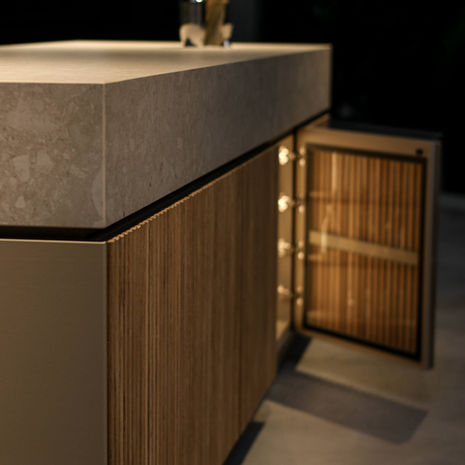 CUBIC BIAC (Bar in a Cupboard) to wygodne rozwiązanie dla miłośników rozrywki na świeżym powietrzu. Ten elegancki bar ukryty w szafie łączy funkcjonalność z nowoczesnym designem. Po otwarciu odsłania przestronną strefę z blatami roboczymi z ceramiki, półkami, szufladami i stojakiem na wino. Wszystko, czego potrzebujesz do serwowania drinków, zawsze pod ręką.