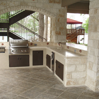 Woda - nie ma prawdziwej kuchni bez zlewozmywaka. Znajdziesz wiele opcji, od ceramicznych, po stalowe zlewy z pokrywą i teleskopowym kranem (np. Barazza). Możesz także zamontować zmywarkę do naczyń, lecz to rozwiązanie nadaje się wyłącznie do zadaszonych i częściowo osłoniętych kuchni.